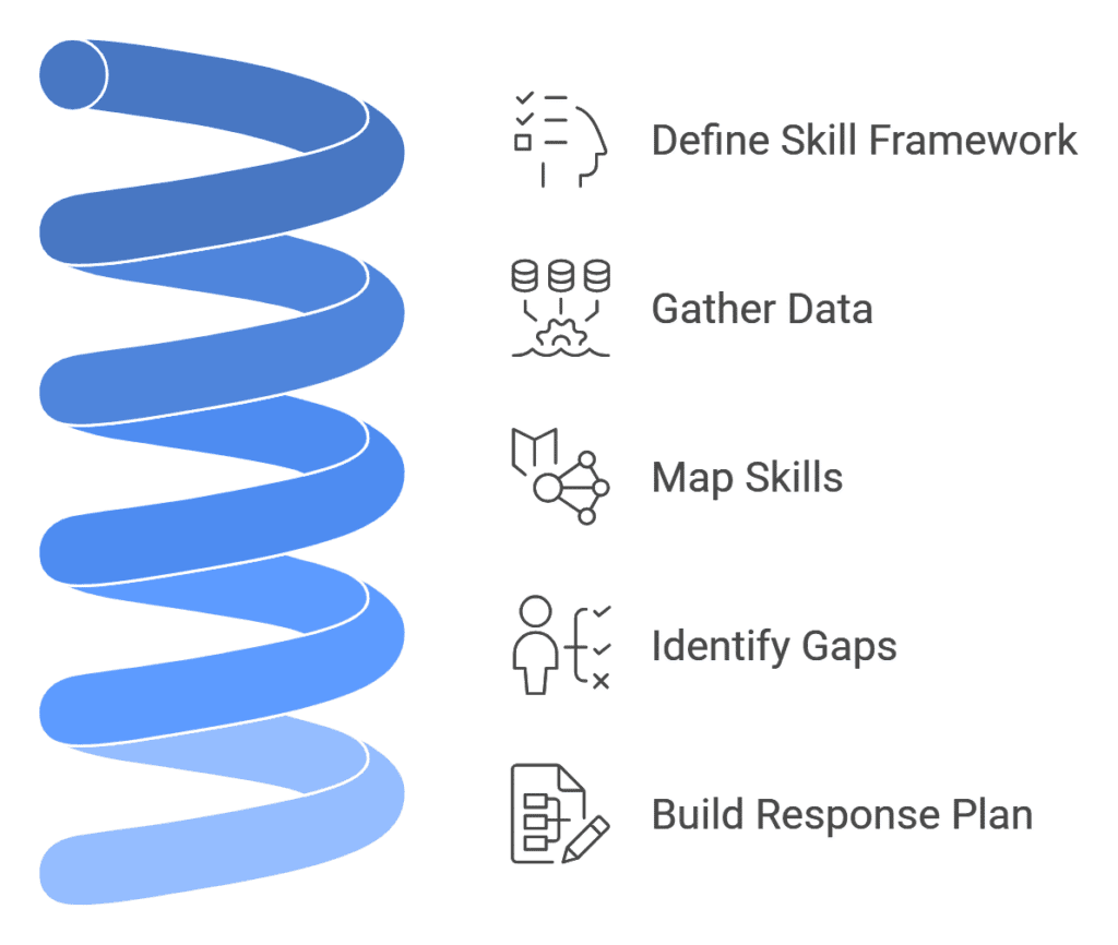 Gap identification without action is just documentation. The response plan should include a combination of upskilling existing employees, targeted hiring, internal mobility, and in some cases, restructuring roles entirely.