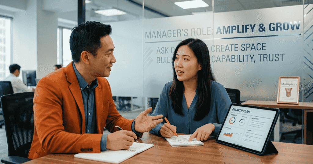 Liz Wiseman, author of Multipliers, found that the best leaders amplify the intelligence and capability of the people around them. They ask more questions than they give answers. They create space for people to figure things out. In a review context, this means listening more and judging less.