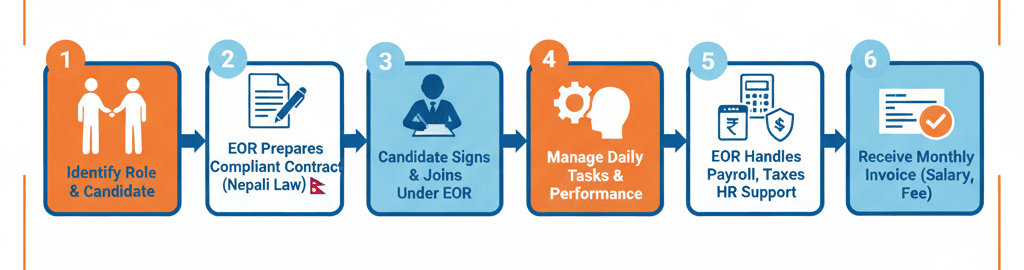 - The EOR prepares a compliant employment contract in line with Nepali law.