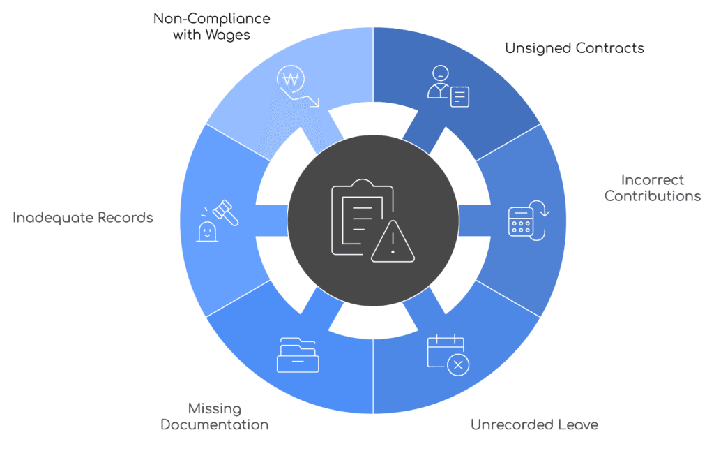 1. Employment Contracts and Documentation Every employee should have a signed, legally compliant contract. Audits verify that contracts are current, accurate, and meet legal requirements. Missing or outdated contracts are among the most common compliance gaps we see.