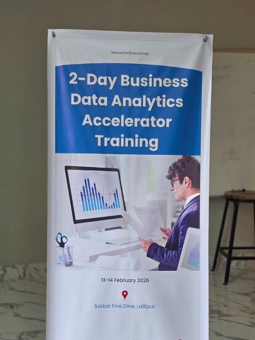February 14, 2026 – Bakhundol, Lalitpur – Frontline Consult Pvt. Ltd. successfully delivered its 2-Day Business Data Analytics Accelerator Training on February 13 and 14 at Saskar Fine Dine, Bakhundol. The program brought together participants from the banking, manufacturing, and development sectors.